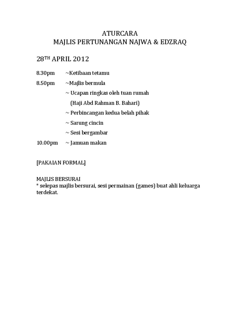 Perbarisan lintas Hormat Kontinjen Sukan. Contextual translation of aturcara into English. Ajk Cenderahati In English - Aturcara Majlis Pdf.